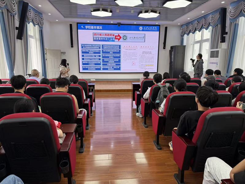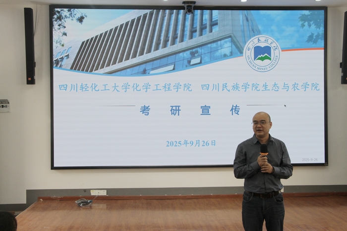 下午,何泽彬一行还面向生态与农学院大二、大三学生开展研究生招生宣讲活动,程纯儒首先介绍了学校在学科建设、科研平台及实践育人方面的优势。周源琳老师则详细解读了四川轻化工大学的发展历史、化工学院的优势,硕士点设置、研究专业方向及招生政策。宣讲会现场气氛热烈,学生们与老师进行了积极的互动。