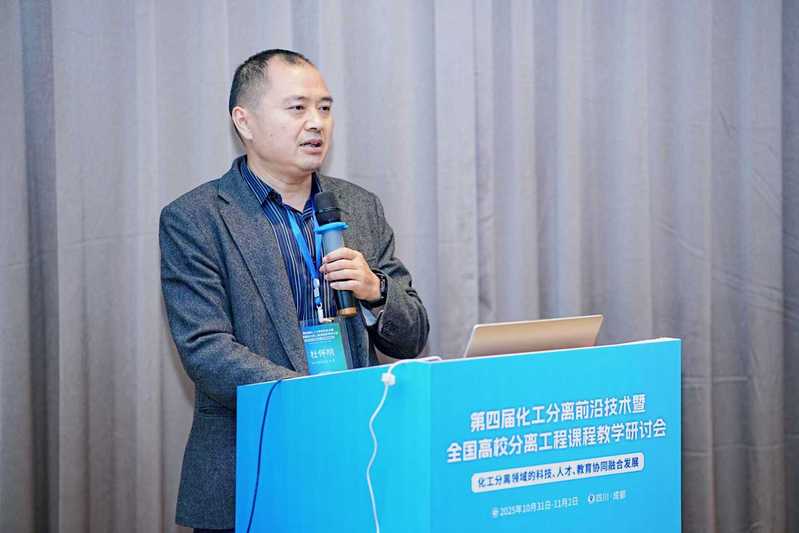 为深入推进教育、科技、人才“三位一体” 协同融合发展,落实《教育强国建设规划纲要(2024-2035年)》精神,探索化工分离工程领域教育教学、人才培养与科技进步的协同路径,2025年10月31日-11月2日,由教育部高等学校化工类专业教学指导委员会主办、四川大学承办的“第四届化工分离前沿技术暨全国高校分离工程课程教学研讨会”在四川省成都市祥宇宾馆隆重召开。化学工程学院副院长杜怀明带领学院相关教学科研骨干参会,并在分论坛作专题报告,充分展现了学院在化工分离工程课程建设与特色资源融合领域的探索成果。