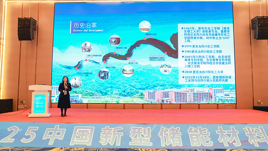 曾英校长在致辞中指出,发展新型储能技术是支撑“双碳”战略、推动能源绿色低碳转型的关键环节。她介绍,学校已整合优势力量组建“盐类科学与工程研究中心”及“盐类卓越工程师学院”,旨在建设一流的盐类科技创新与人才培养基地,推动锂、钠、钾等关键元素在储能材料中的应用。她表示,学校将以大会为契机,深化与国内外科研机构和产业界的合作,为能源材料产业创新贡献川轻化力量。