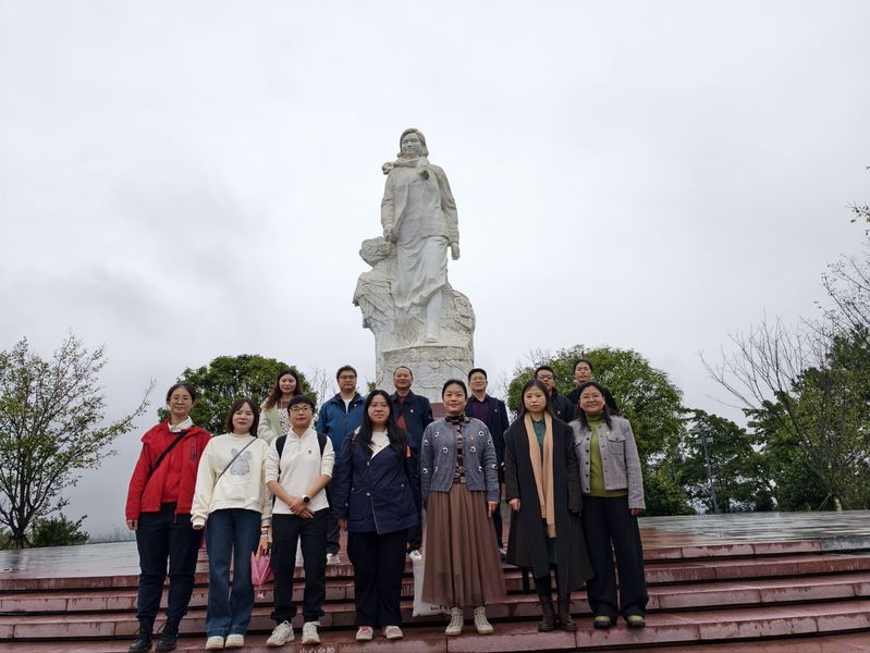 活动首站抵达邓萍故居。在庄严肃穆的邓萍烈士雕像前,全体人员整齐列队,举行了简短的缅怀仪式,并敬献鲜花,表达对这位红军早期杰出指挥员的深切哀思与崇高敬意。随后,大家步入邓萍事迹陈列馆,通过观看珍贵的文献资料和历史图片,详细了解了邓萍烈士短暂而壮烈的革命生涯。他那“红军不怕远征难”的英雄气概和为中国革命事业不畏牺牲、勇往直前的长征精神,深深触动了每一位在场教师的心弦。