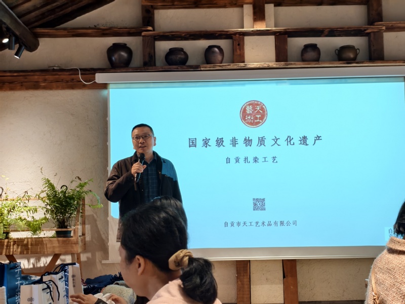 活动伊始,女教职工们走进扎染艺术空间,细致观赏各类扎染作品,大家驻足欣赏色彩肌理与纹样创意,领略手工艺术的匠心与美感。接着在扎染课堂上,学院院长杨郭致辞,向全体女教职工致以节日祝福,肯定大家在教学、科研、管理岗位上的辛勤付出与巾帼担当,鼓励大家在传统文化体验中放松身心、增进交流。省级扎染传承人李娟讲解自贡扎染历史渊源与工艺特色,带领大家感受国家级非物质文化遗产、自贡“小三绝”之一扎染的独特韵味。最后是手工体验环节,大家发挥巧思,通过捆扎、折叠、浸染、固色、拆线等步骤,精心制作扎染玩偶作品,蓝白交织,纹样别致,现场氛围温馨融洽。