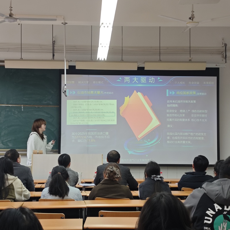路演现场,各参赛团队立足化学工程学科特色,聚焦“卡脖子”技术难题与社会痛点,作品涵盖了新材料研发、新能源转化、绿色化工、双碳技术、环境治理以及生物健康等多个前沿领域。答辩过程中,各项目答辩人从项目背景、核心技术、商业模式、社会价值及团队架构等方面进行了系统阐述,不仅展示了扎实的专业功底,更体现了将实验室成果转化为现实生产力的创新思维。