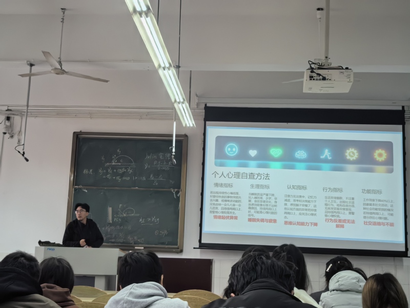 在心理委员工作例会上,诸毅超从气温波动与内分泌影响、生物钟紊乱和褪黑素变化、人体代谢加快、免疫系统切换、过敏反应等方面介绍了春季心理问题、精神疾病复发率升高、新发疾病增多的具体原因,与心理委员共同学习了三色工作法和心理健康自测五维度。同时,他介绍了通过充足的睡眠、适量运动、有规律作息、艺术与审美、正念观念等方法改变自身心理健康状态的具体办法。