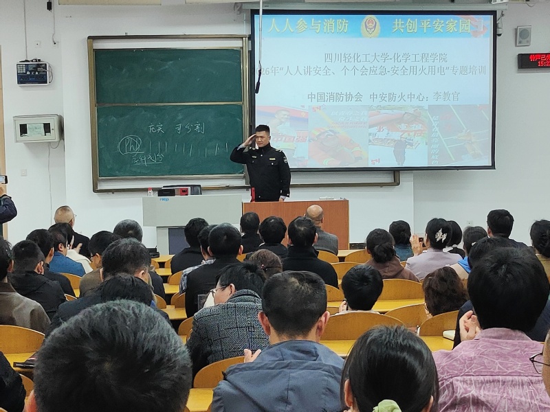 为切实强化教职工安全防范意识,提升突发事件应急处置能力,3月25日,化学工程学院举办“人人讲安全,个个会应急”安全专题讲座,特邀消防宣传中心教官李伟光担任主讲,学院全体教职工积极参与。